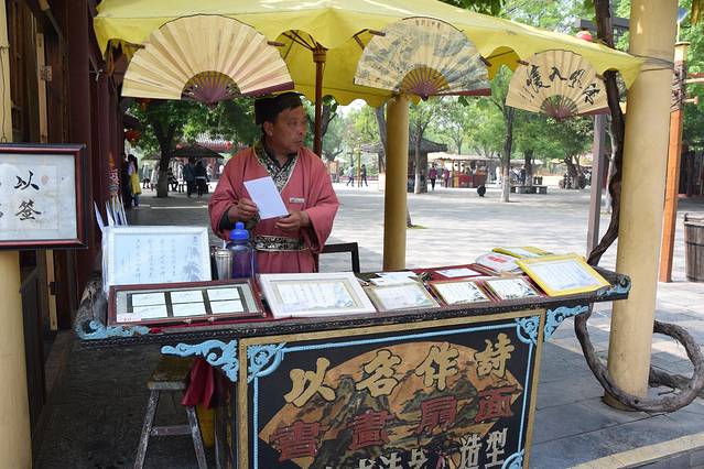有很多清明上河园的扇子,门口外面也有,10元一把,非常划算呢