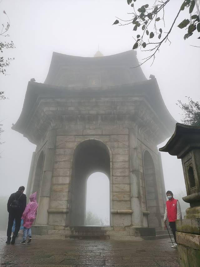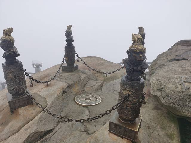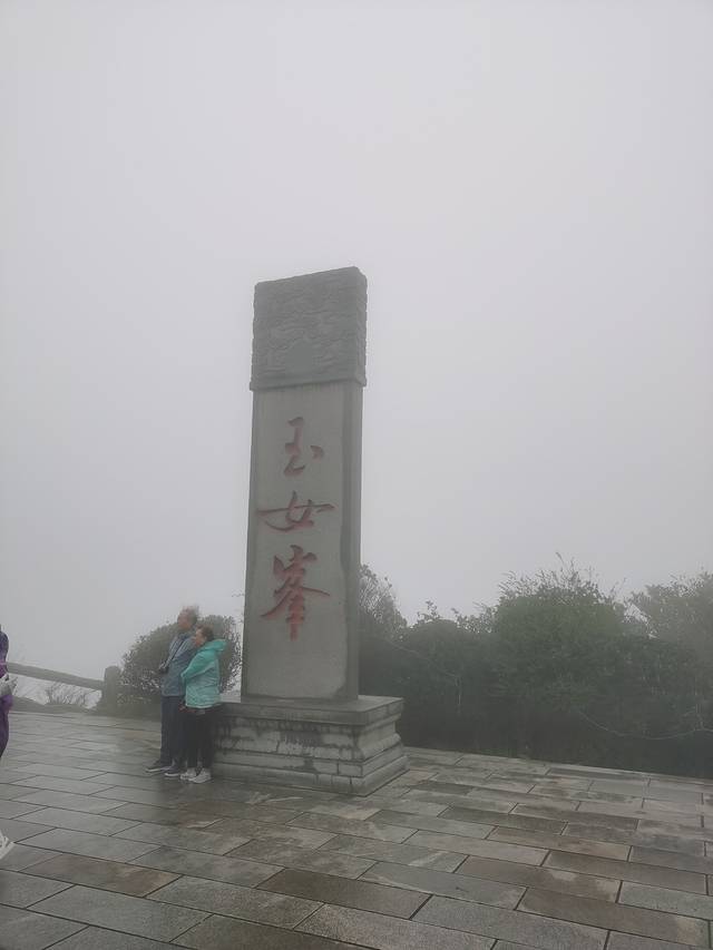 因为先与饭店老板咨询了,我们先是每人25块坐景区内的中巴到达了山顶的玉女峰,山上阴天下着蒙蒙细雨,就没有拍玉女的石像。
