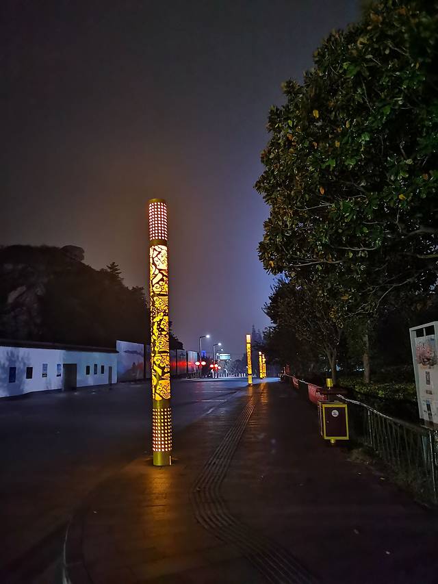景区大道路边的金箍棒路灯,照明效果不佳,创意不赖👍👍👍