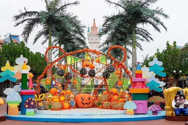园区里的整体氛围非常好,原本到处都是熊出没的IP布展,现在又增加了一些惊叫狂欢主题的氛围,更是魅力十足。