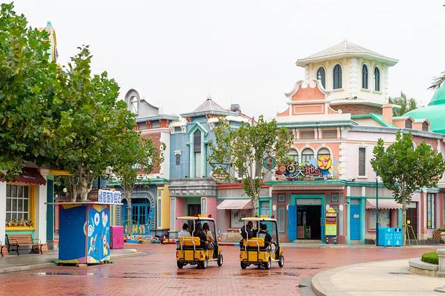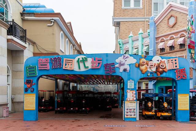 整个园区还是比较大的,如果不想走路的话,景区入口可以租代步车,然后在园区里可以任意停放(但是切记不要停在路中间哦),代步车很好开。虽然开着有点慢,但是很安全。