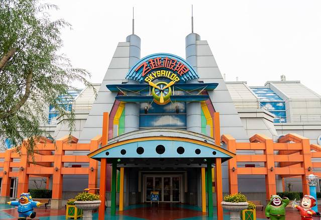 入园以后左右两侧分别有不同的体验项目,左侧是室外游玩项目(急速风车、勇敢者转盘、挑战者之旅、高空飞翔、转转杯、旋转木马),右侧是室内体验项目(秦俑地宫、唐古拉雪山、魔法城堡、飞越极限)等。