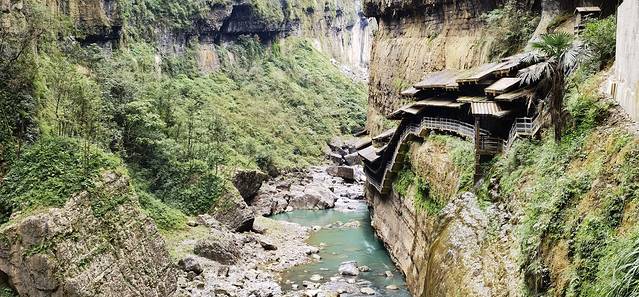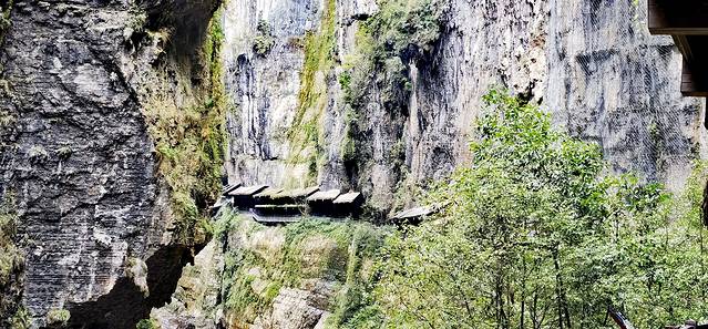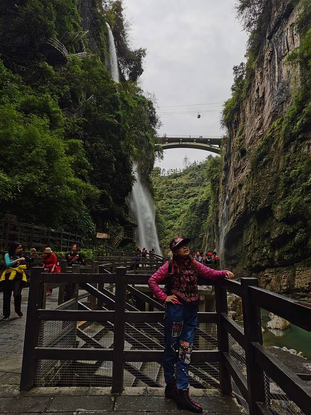 云龙地缝呈“U”型,上下垂直一致,全长3600米,平均深75米,是奇异独特的喀斯特景观。这里的绝壁巨壑环抱,山峦叠障,地形多变;地缝内流水淙淙,飞瀑跌落,五彩黄龙瀑布、彩虹瀑布、云龙瀑布、冰瀑、沐抚飞瀑都是观景的好去处。 故此17日游览云龙地缝,上上下下,走走停停,耗时约二个半小时。