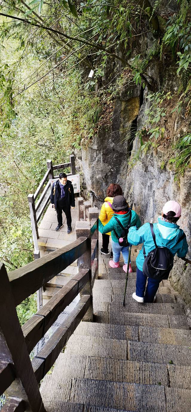从云龙地缝谷底攀登的石台级,共900多梯,据估计爬上去要半小时,我和好友两人耗时二十分钟。