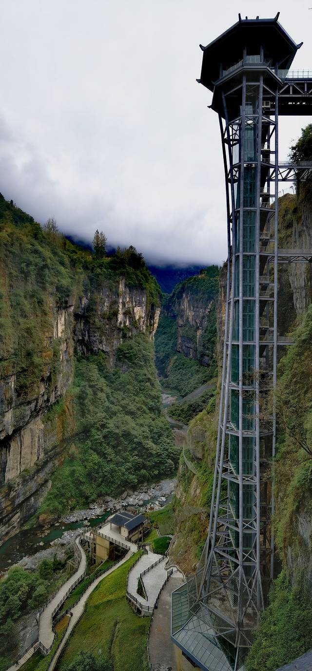 从云龙地缝上去的垂直电梯,秒秒上顶。