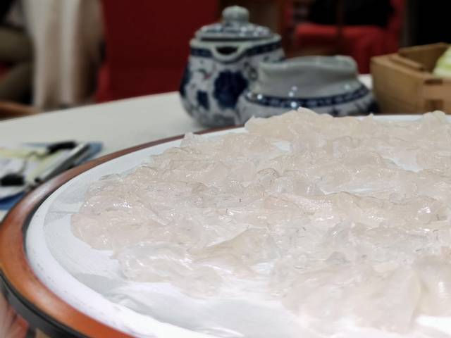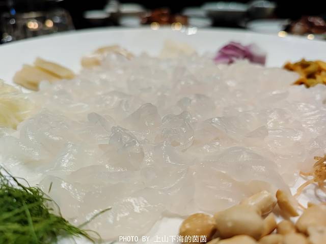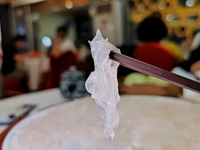 金雕刺身:在顺德品美食,鱼生是绝对不能错过的一道菜!相对于普通的鲩鱼鱼生,在南记可以选择“鱼中之王”金雕做刺身。随便夹起一片都是薄如蝉翼、晶莹剔透,纹理清晰,可见师傅的刀工十分精湛。鱼肉经光线折射泛出七彩缤纷而带油润光泽,十分诱人!