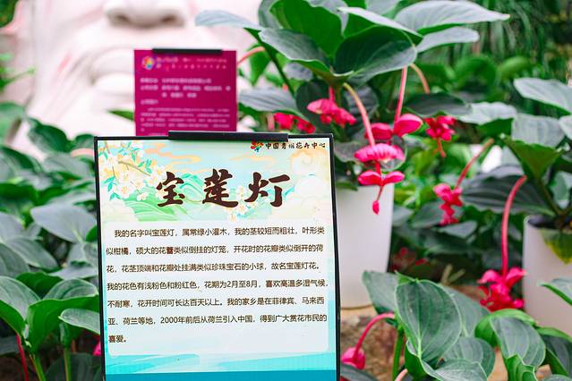 展厅分为不同的区域,正常游览的话建议1小时左右,刚一进门就看到了这个像灯笼一样的紫色花朵,一看解释才知道,这竟然是宝莲灯,似乎与小时候在动画片里看的还是有所不同的,不过也真的是大开眼界了,除了平日里最常见的百合、杜鹃等,这样“稀有”的花朵,还真是第一次见。