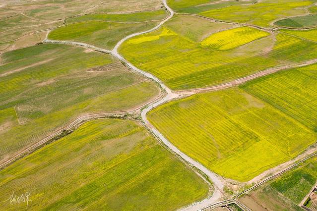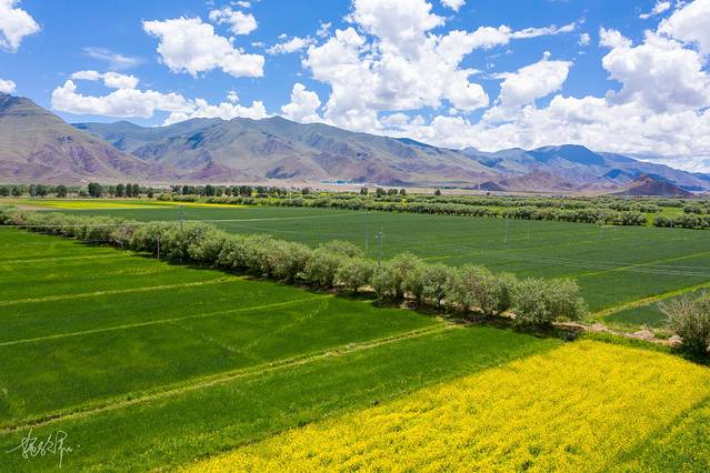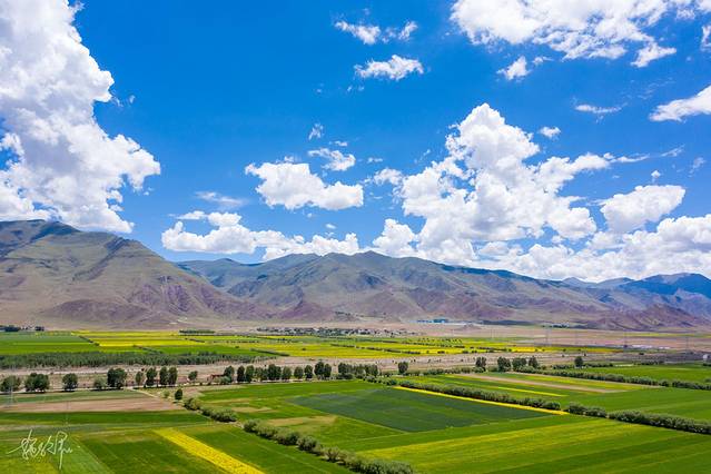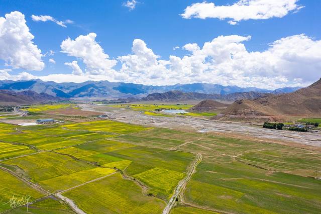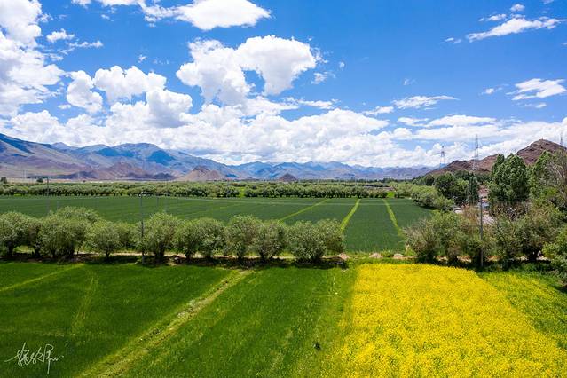 ⋀林周农场途中,一眼望不到边的青稞地与油菜花。