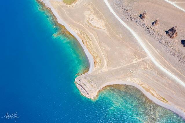 泡沫的车技是我至今为止在西藏坐过的司机先生最好的了吧,即便是在垃圾的路在他的方向盘里都能达到80码。快到三圣石的时候,就喊泡沫停车飞起了无人机,天气甚好,熟悉的西藏蓝就这样呈现在眼前。