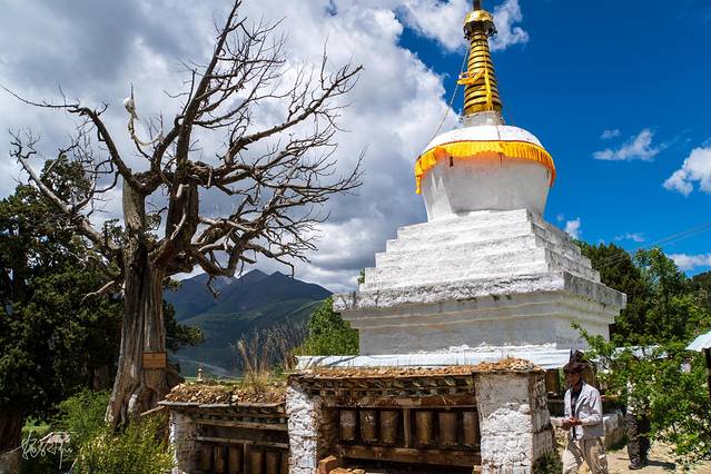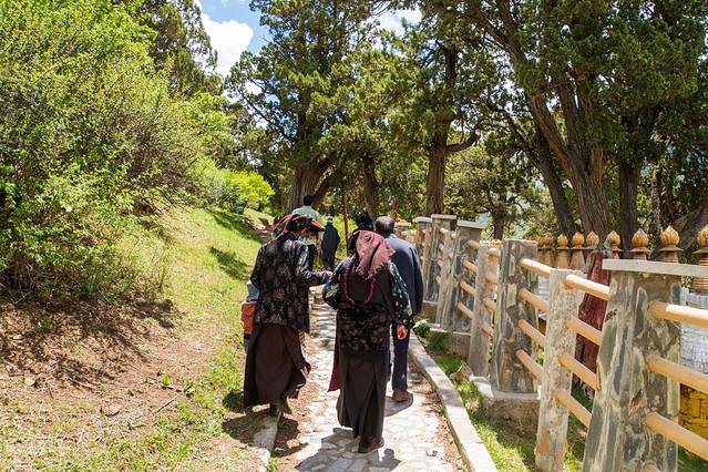 古老的柏树林与这座噶当派的主寺,相伴相依已经许久,这是我第二次来到热振寺,想去周边的108座灵塔走走看看。树荫下,凉风中,噶当派始祖阿底峡的灵骨舍利也供奉在其中。