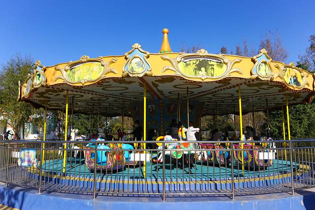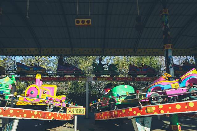 进入欢乐世界后首先看到的是游乐园,大大小小的有三十多个项目,单项游乐项目收费从10元-25元不等,1.2米以下的儿童是免费的,但是为了安全必须要跟随一位成人一起游玩哦。 比如 图中这个小火车,只需要10元,基本也没什么刺激度,还是很适合低龄儿童玩耍的。