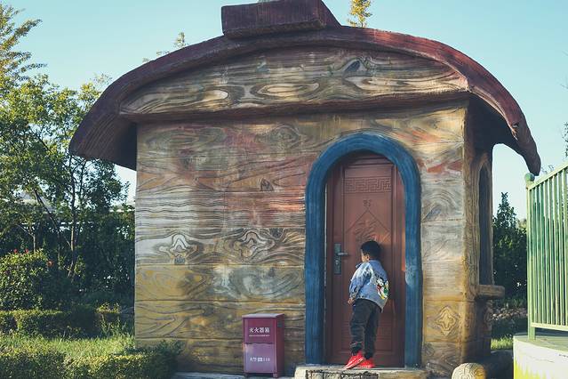游乐园里还有很多网红元素,无论是孩子们还是漂亮的小姐姐,摆造型拍照也是相当好看的,就像这个房子,多多少少有点像霍比特人的小屋,孩子对其充满了兴趣。