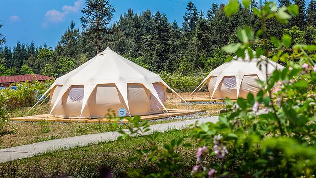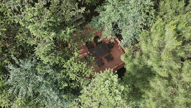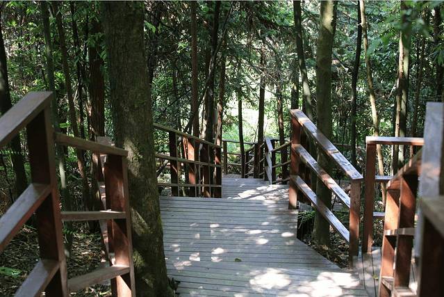 体验区有一条森林步道,顺道和妈妈去感受了下这里的自然环境。虽然太阳高照,山间吹来的风却非常的凉爽,带着泥土与植物的芳香,仿佛将胸中的浊气都洗刷了个干净。我们慢悠悠地散着步,听到好多鸟叫声,看到都是郁郁葱葱的树木,身心十分的舒畅。