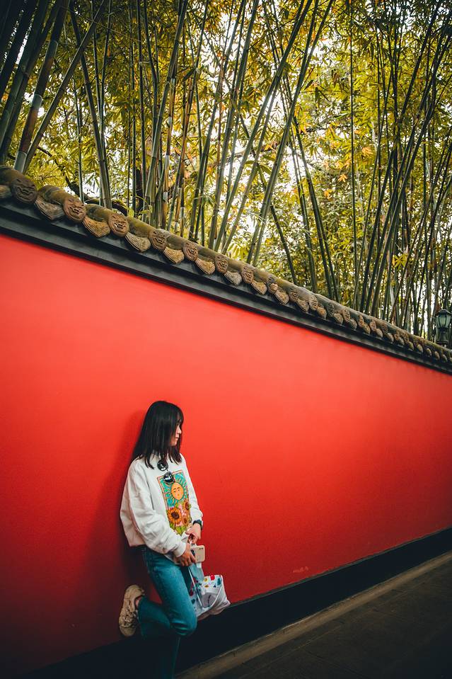 景区内最著名的红墙竹影,爱拍照的小姐姐们可别错过噢。