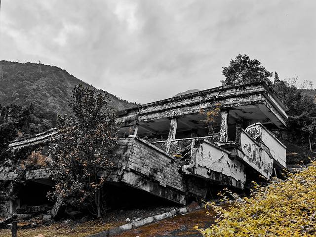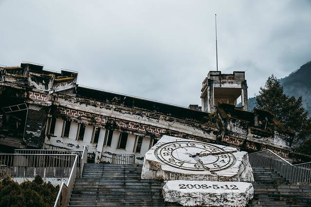 这是2008年汶川地震映秀漩口中学遗址,国家将这里保留下来,作为爱国主义教育的一个特殊景点。这里不收门票,人们都可来此缅怀逝者,寄托哀思。