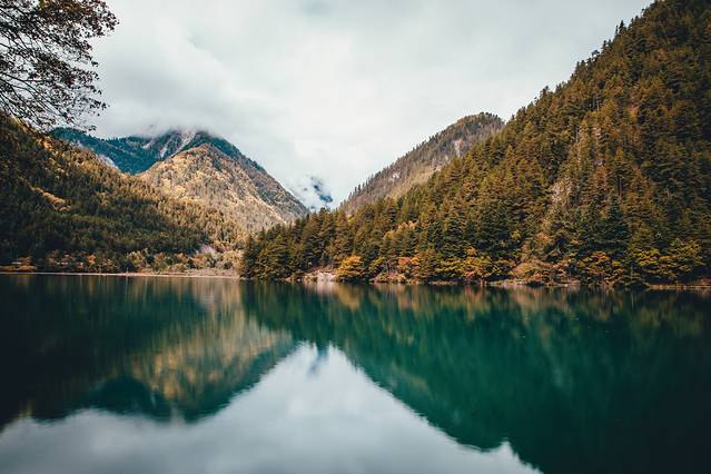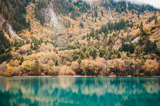 九寨沟长海 初醒的彩林 是海子最好的点缀