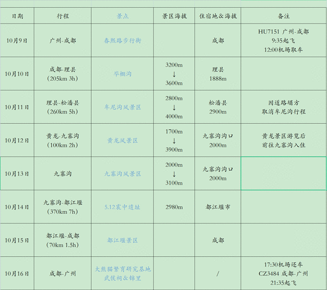 本次行程走川北线,目标就是倾慕已久的九寨沟,当然沿途穿插的美景也是不可错过的。