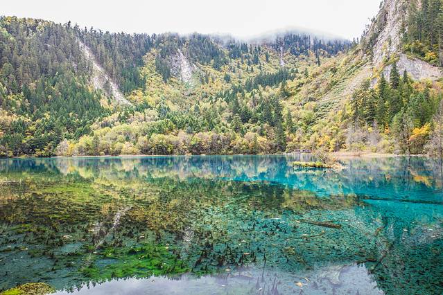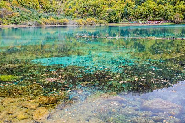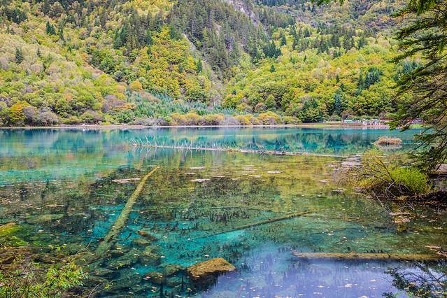 日则沟最惊艳的景点—五花海 水下的朽木清晰可见