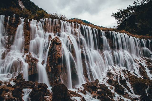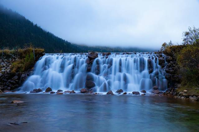 诺日朗瀑布,海拔2365米,瀑宽270米,高24.5米,是中国大型钙化瀑布之一,也是中国最宽的瀑布。