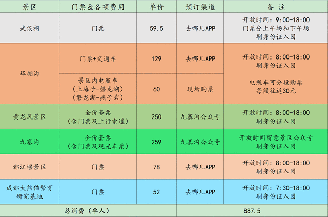 门票有点小贵,特别是黄龙和九寨沟,但为了美景,冲就是了~