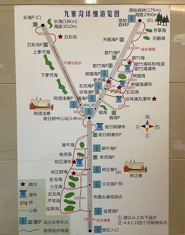 景区游览是以步行+乘车的方式结合,而我们这次基本上三条沟的景点一个不落的看完了,一天游览下来接近3万步,加上在昨天黄龙的2.8万步,两天下来腿差不多废了。