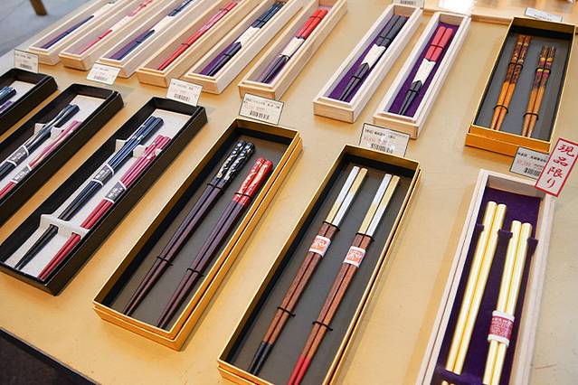 可以成对购买的夫妻筷的种类也非常丰富。甚至还有难得一见的金光闪闪的筷子!