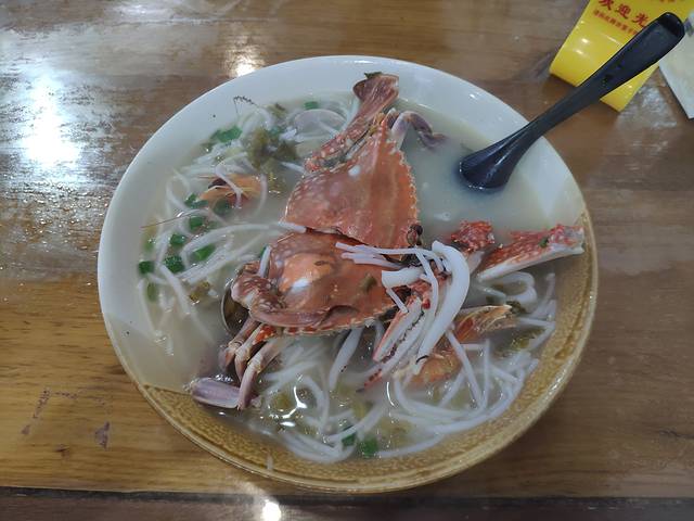 这应该是我花费最多时间吃完的一碗面了~三鲜面加一只大螃蟹,鲜到掉眉毛,太好吃了👍三鲜面20,有虾,蛤蜊,鱿鱼,加上雪菜也很鲜~单加的大螃蟹时令价,我花了38~面条有三种可以选,我的这种应该叫米面吧,口感很符合我的口味,完美!