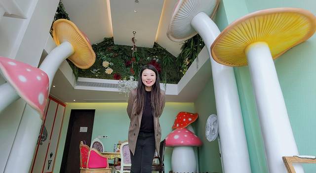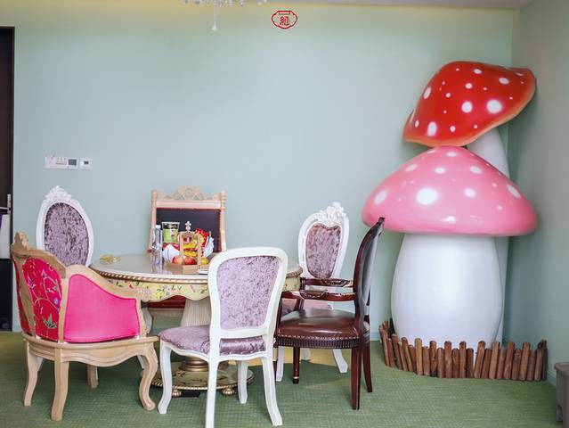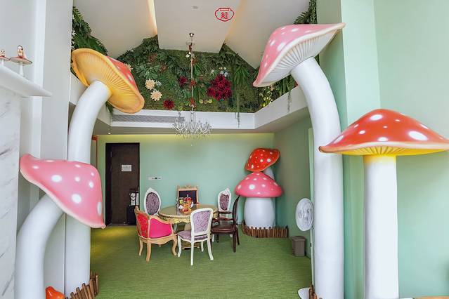进门的那一刹那,真的让我眼前一亮,房间里面竟然长满了蘑菇,这样的体验太奇幻了,立马将我的童心激发出来,沉浸在这满是蘑菇的梦游仙境里。