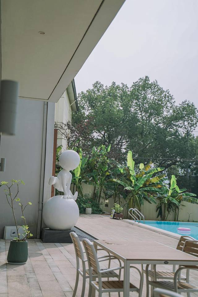 在院子的里头 还有一个泳池 就算什么事情都不干