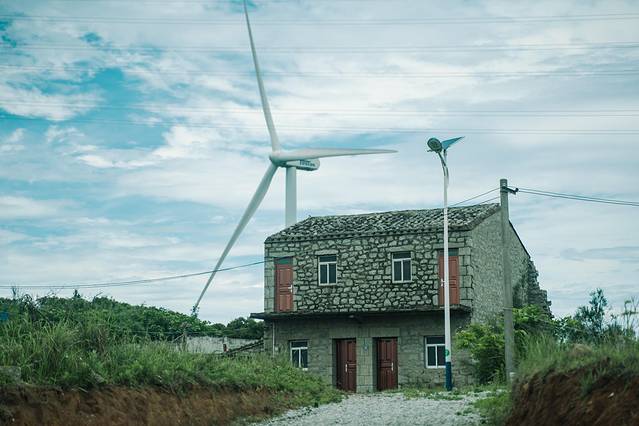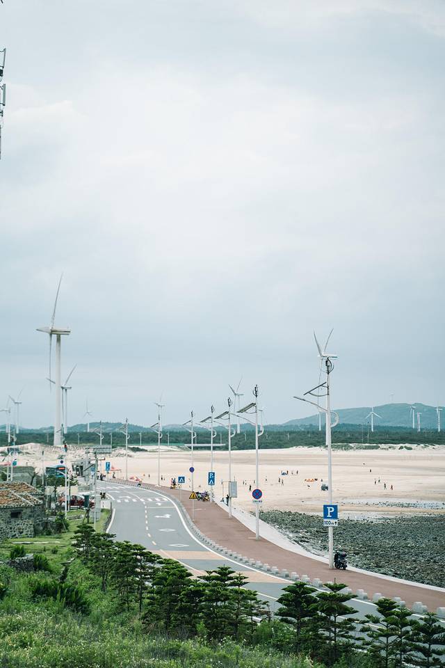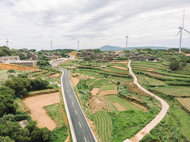 如果说环岛路是最美的海边公路,那么前往猫头乾的这条路可以说是平潭最美山路,两边的梯田和风车,仿佛置身与漫画世界里