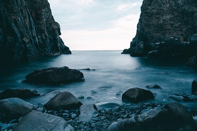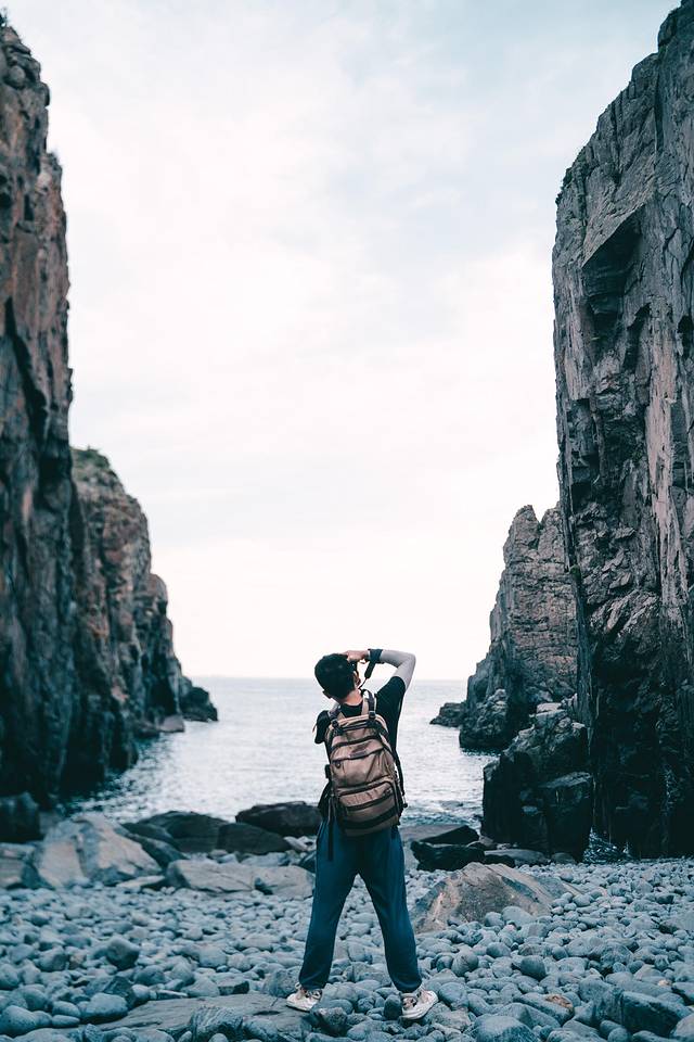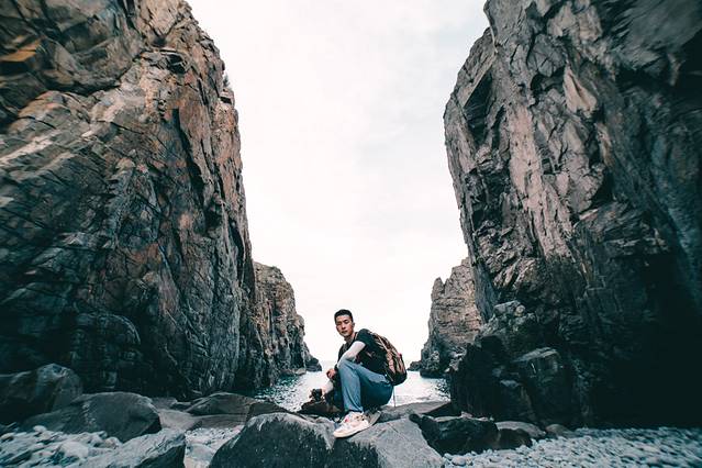 到了仙人井底下,黑色的悬崖和鹅卵石,清澈的浪花,颇有冰岛黑沙滩的感觉