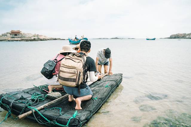 坐上简易的“摆渡船”开始我们的孤岛寻宝活动