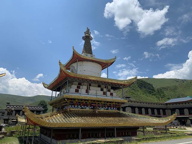 早饭出发,不一会儿就能到 新都桥 镇了。从镇子往东走10公里,就能看到G318路边北侧的 贡嘎 神山观景台,应该需要徒步或骑马上山,这观景台应该不太高。但是骑马的兴致我们可真的都没有了,一脚油直接去下一站了。