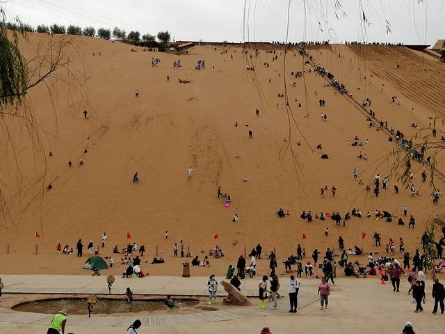 滑沙的人多得把滑道和攀登梯都给堵住了,沙子上的杂物也有点多,需要穿鞋带鞋套,感觉没有大沙漠里自己承包一大片沙子来得尽兴,在这里只能说是“玩”,但做不到“撒欢”,回忆一下腾格里,同是一片沙漠,沙坡头的这片滑沙区比起沙漠腹地,就像是动物园中被驯服的老虎,有虎的特性但已缺失了虎的野性。