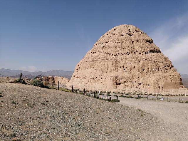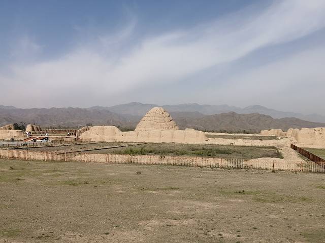 坐在景区车中,伴随着车内语音讲解,看车窗外大大小小的土堆,荡去昔日王陵的威严,只剩下这一座座落寞的黄冢丘,仿佛在蒙古铁骑下灰飞烟灭的西夏王朝,定格成贺兰山下那道永恒的伤。