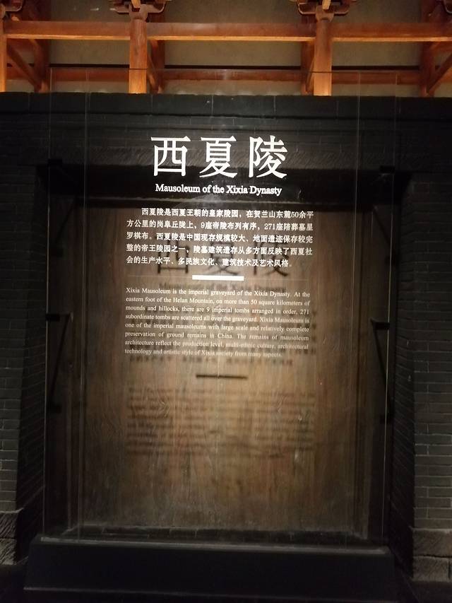 进入景区最先看到的是西夏博物馆,西夏博物馆里概况了西夏的起源、文化、文字、更迭的历史。如果你想探究这个神奇的国度,一定要好好看看西夏博物馆,不过你看得愈仔细,后面游览到陵墓区,就会愈觉得悲壮。