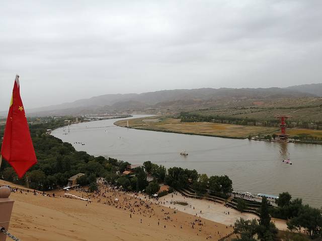 因为孩子太喜欢玩沙子了,所以行程安排不得不往后拖延了两个小时,到沙坡头已接近下午三点半了,时间紧,加之沙漠项目已都体验过了,此次沙坡头之行就只打算转转黄河区了。让我非来不可的原因是我要感受一下王维当年面对黄河和黄沙的豪情满怀。