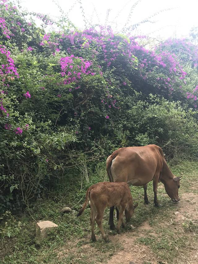 公交去南山寺,车只能到山脚,然后走上去,碰到了特别可爱的牛牛母子~祈福~