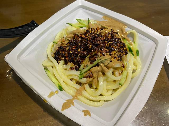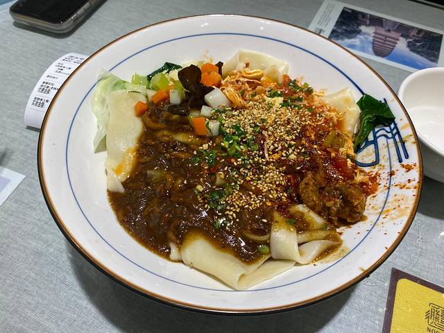 为了尽快解锁更多西安美食,一顿饭要拆开了吃,吃完肉夹馍和凉皮,马上反方向回到博物馆后门,吃上一碗biangbiang面!