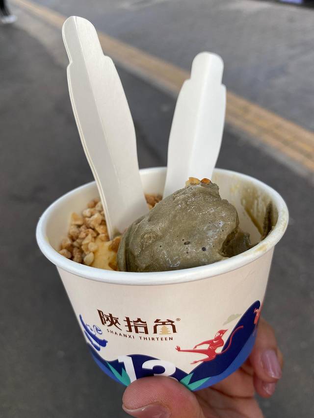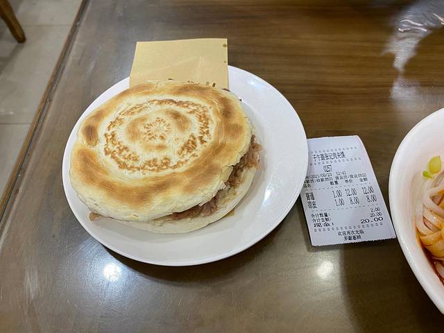一上午就逛完了陕博,听说附近有好吃的小店,一路溜达就找来了,人还不少,点了普通的肉夹馍(在西安吃到的唯一一个猪肉肉夹馍)和凉皮。