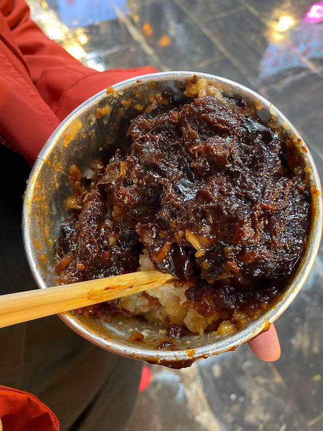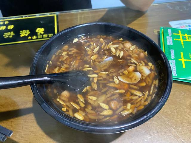 这家店就在回民街范围内,一直往西走,一边躲着积水,一边看着导航,一边注意着横冲直闯的电动车,一边找着门头,果然……还是走过了。门头很小,店内很大,门口点单,有一些菜是需要自己去拿的,其它的等上就可以了。环境一般,味道很好,尤其是秘制八宝粥,和家里的口味完全不一样。