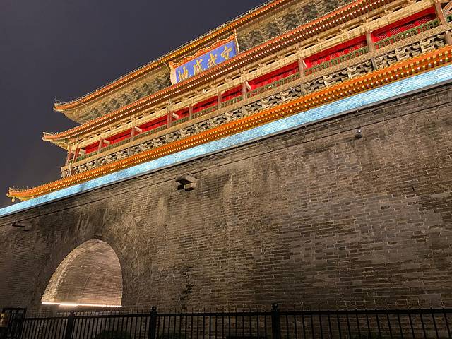 演出结束后挺晚了,沿路走回民宿,看看晚上的钟鼓楼和回民街
