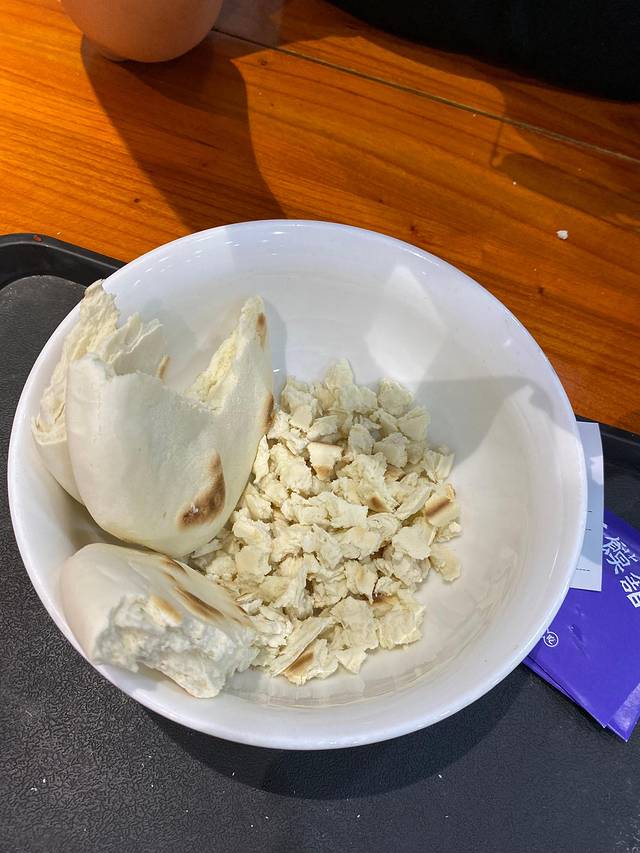 要掰成黄豆大小,每一粒最好都有皮有瓤……最后掰到手指头抽筋,好在没有被店家嘲笑,直接拿去冲汤了;羊肉泡馍这东西,要么非常喜欢,要么完全拒绝,又香又油,当地人吃完一刮嘴一层油沫,就是好汤的象征