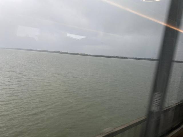 当天能见度并不好,江面上雾很大。
