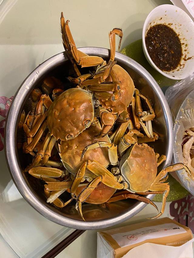 10.11早上吃的当地的荠菜馄饨和蟹粉小笼包,我真的喜欢这种甜口的食品,中午跟着叔叔吃的大餐,作为一个来自黄土高坡的孩子,真的很喜欢海鲜,非常完美的是我们去的时候刚好是大闸蟹的时节,开心到不行。