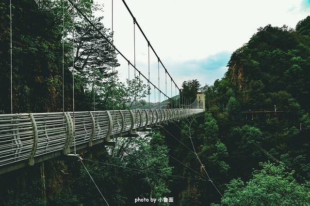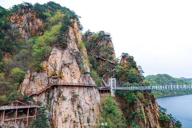 虎谷峡是新开放没几年一个比较新的景区,最大的亮点是修建了两座横亘在峡谷中的玻璃大桥和一座山崖边的玻璃栈道和观景台,除此之外,湖光山色绮丽秀美的景色也让人十分惊艳,也有人把这一带的风貌称作是“北方小 张家界 ”。