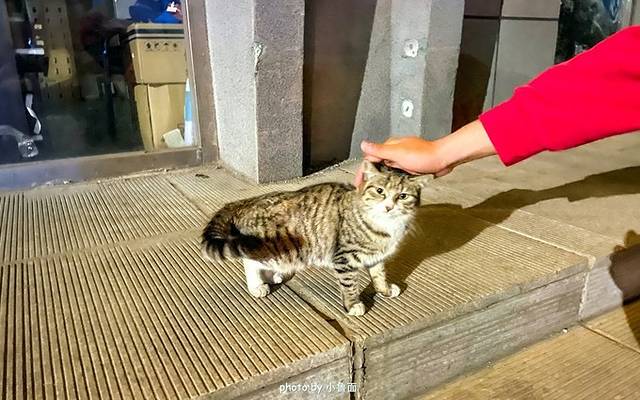 晚上回民宿的路上看到一只小野猫,东哥上去试探结果小猫自己凑了上来,蛮可爱的