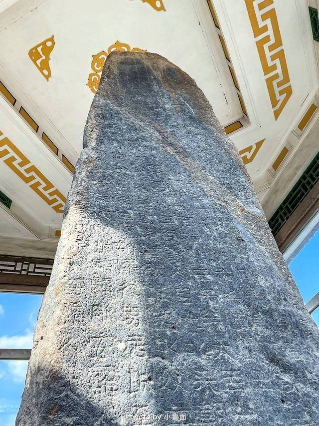 这是由一块天然的石头雕琢而成,高近7米,用汉字写成,1600年的历史了,非常难得。