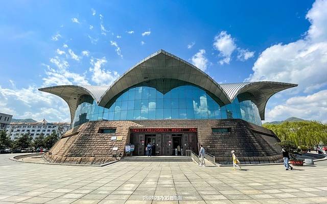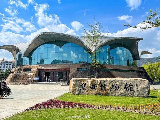 集安 市博物馆,造型为倒扣八瓣莲花的形状,这是因为高句丽先民崇拜莲花。外墙饰材是高句丽文化石。博物馆的门票价格不菲,60元/人,但是买联票的话比较合适85元涵盖四个景点,玩两个景点就回本了。