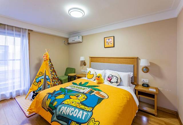 青山酒店现有215间客房,16种房型可供选择,特色儿童主题亲子客房多达32间。